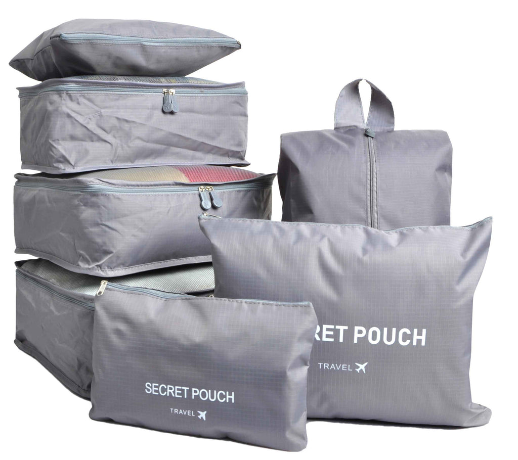 Gray 7 Set Travel Cubes,Waterproof Mesh Durable Luggage Packing Organizers,1 Shoe Bag