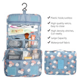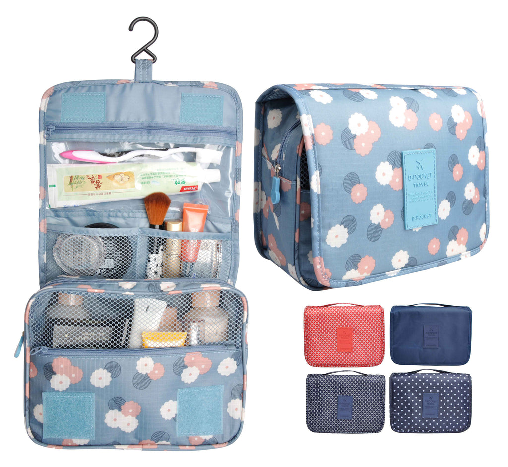 Blue Flowers Portable Waterproof Travel Kit Toiletry Cosmetic Bag Hanging Hook For Men and Women